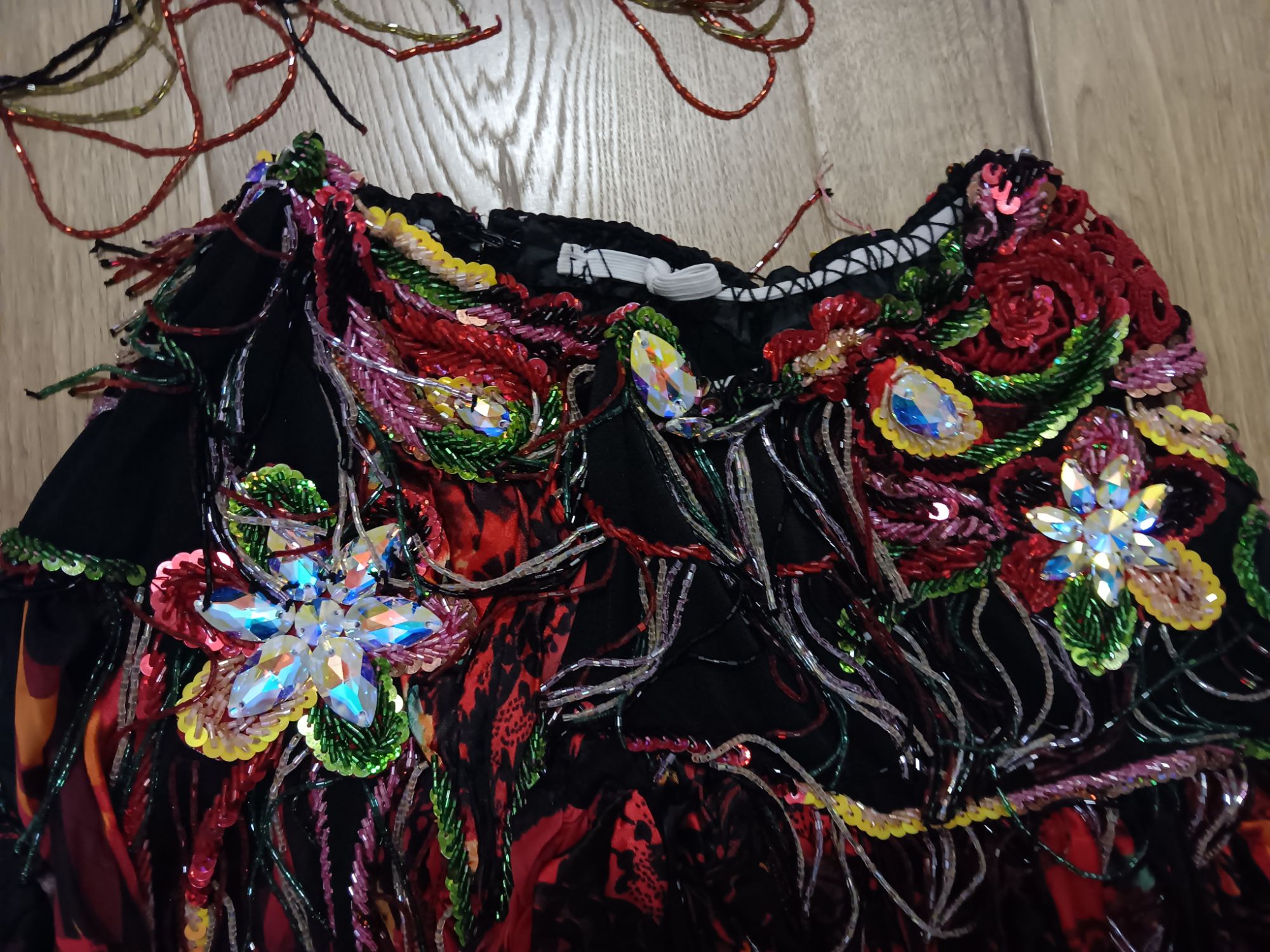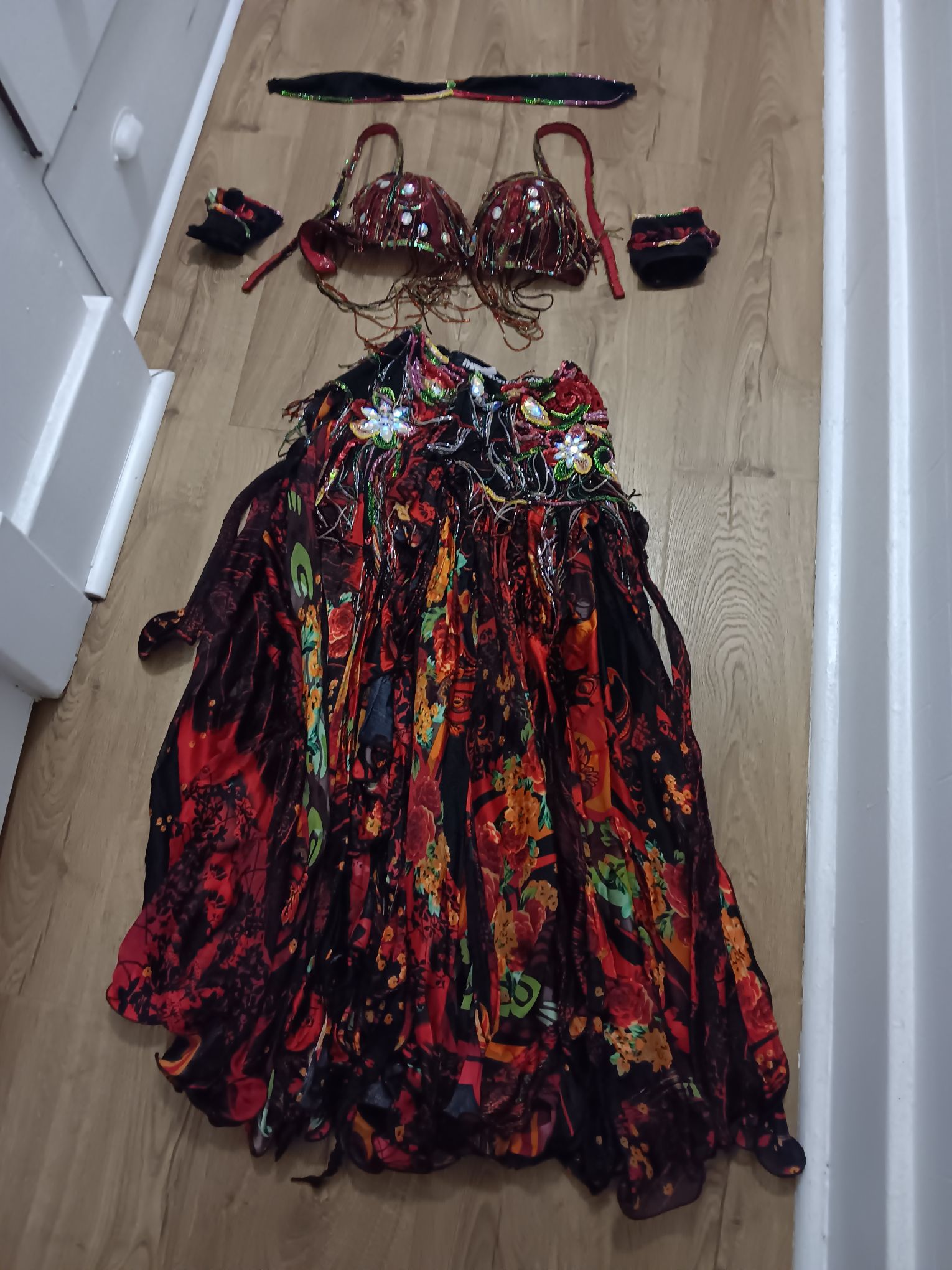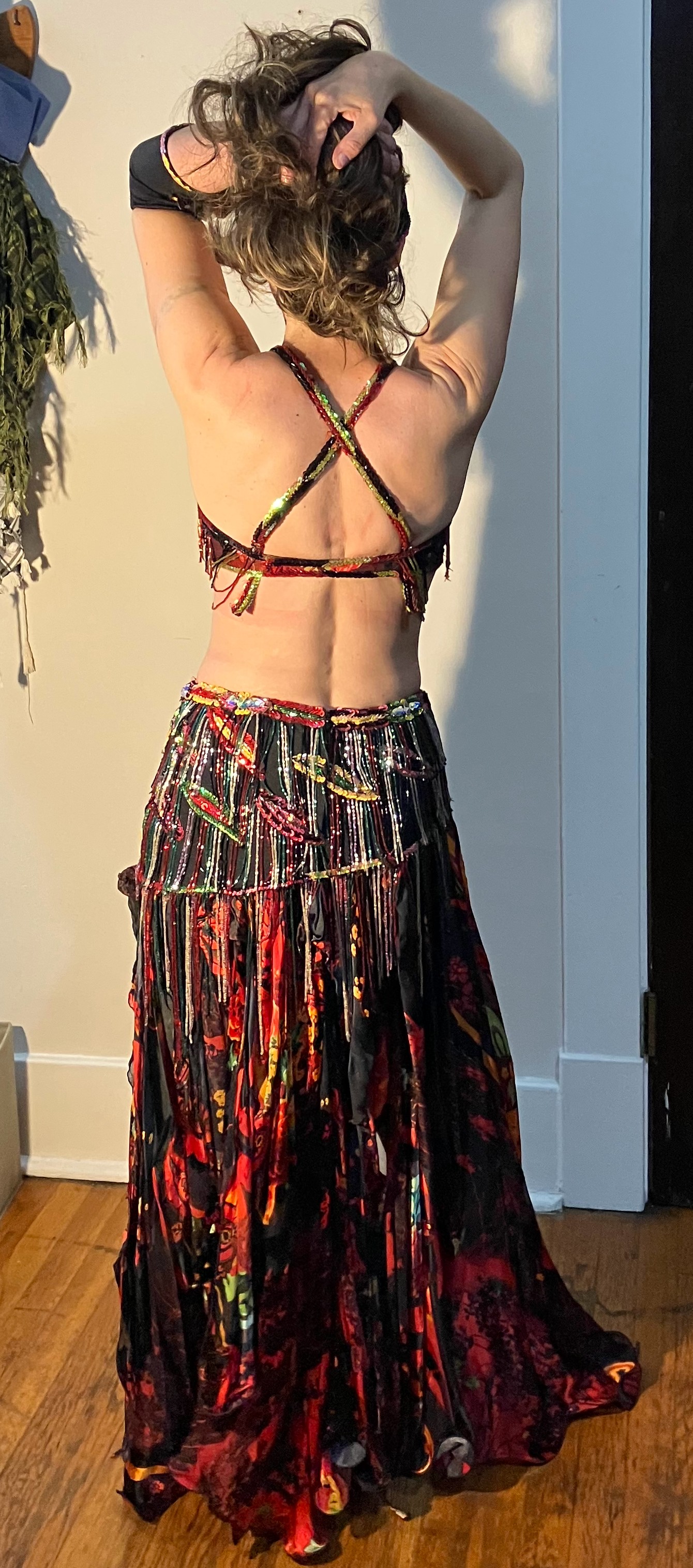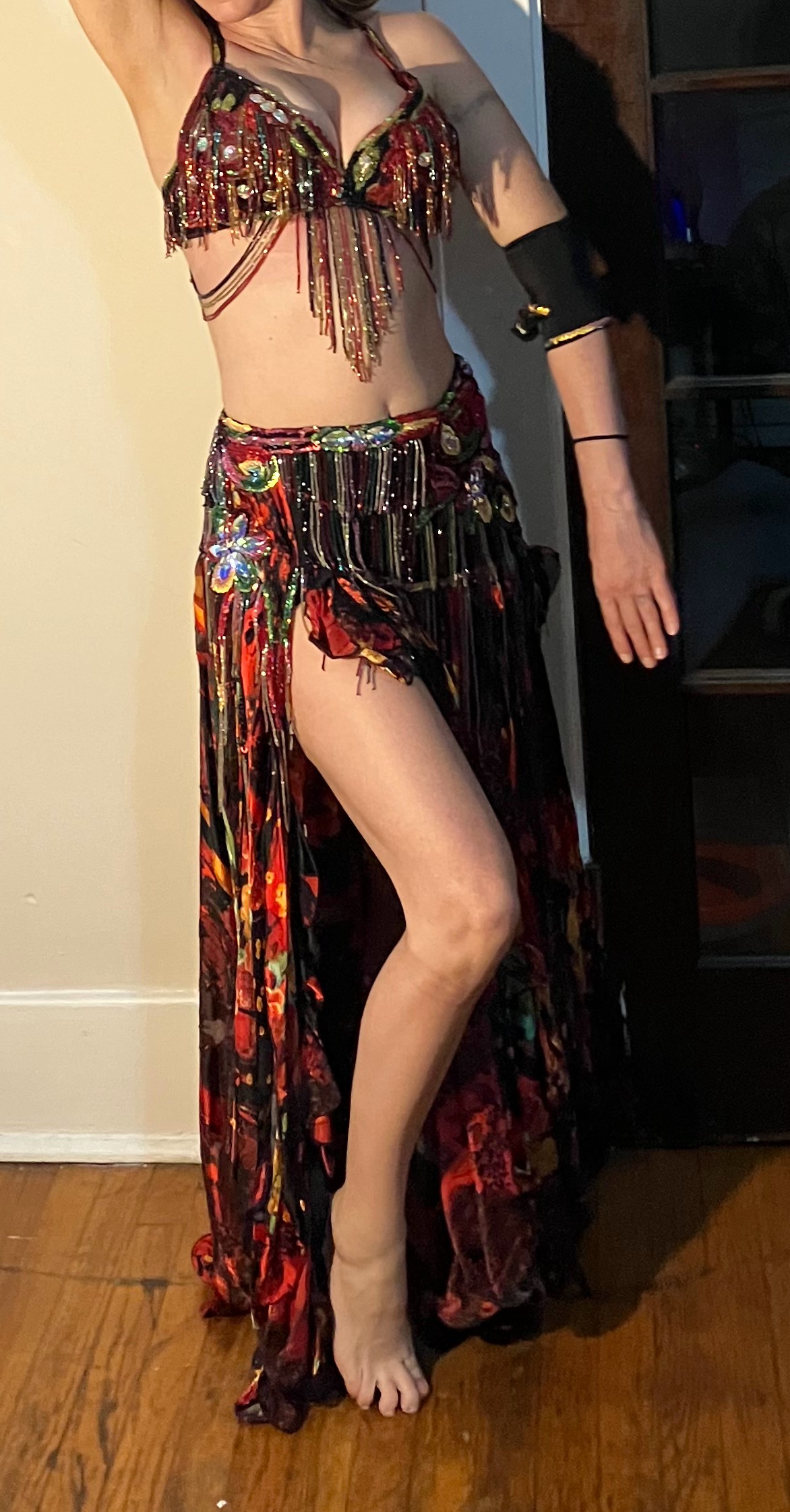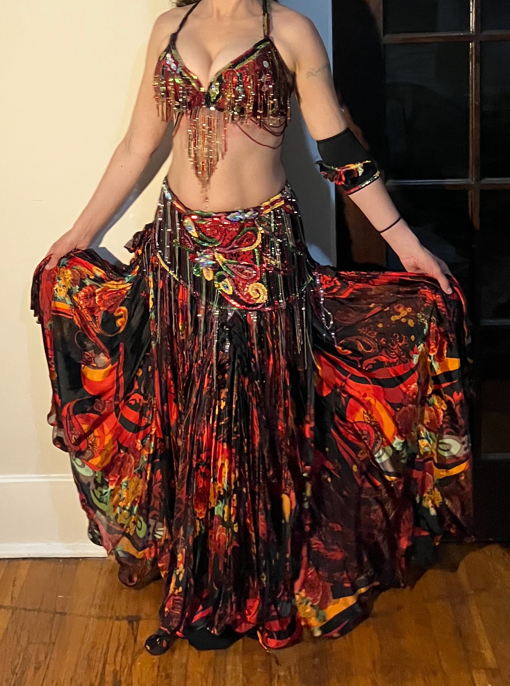 This costume was made by Nihal of İstanbul. Nihal was a seamstress for Bella for more than a decade so the quality is comparable. This costume is one of Nihal’s own designs. The skirt is silk so it flows beautifully.