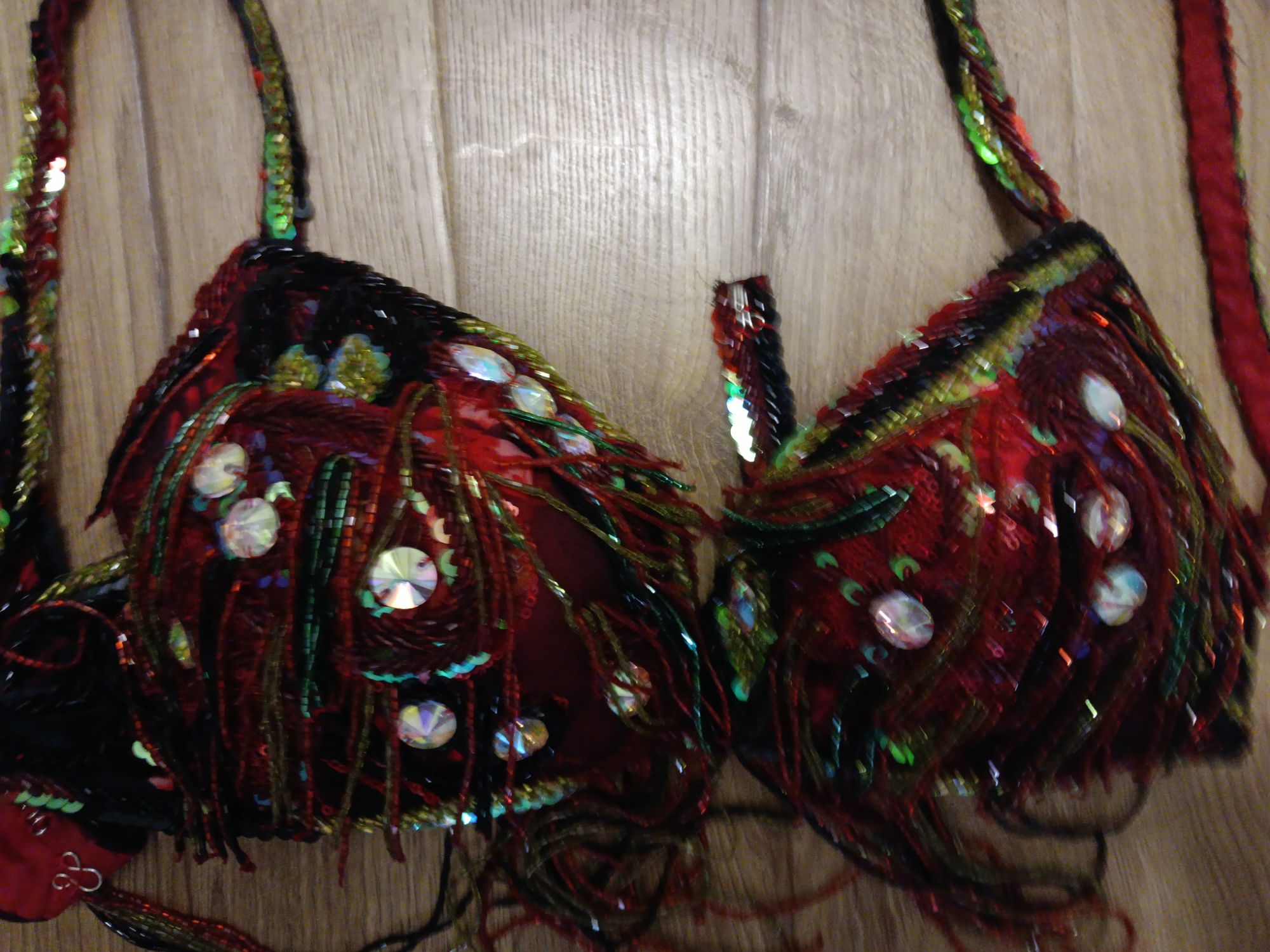 Comes with bra, belt-skirt combo, headband, two arm bands.